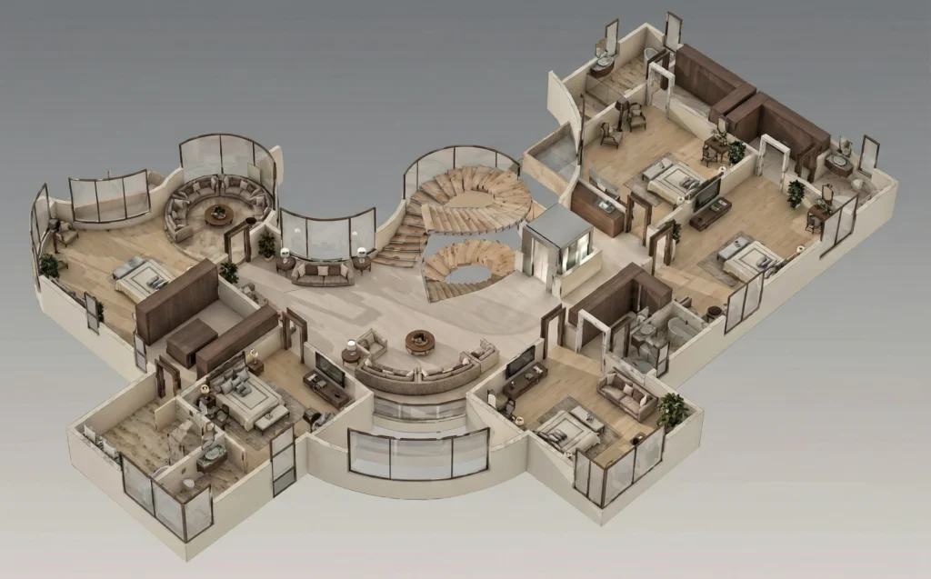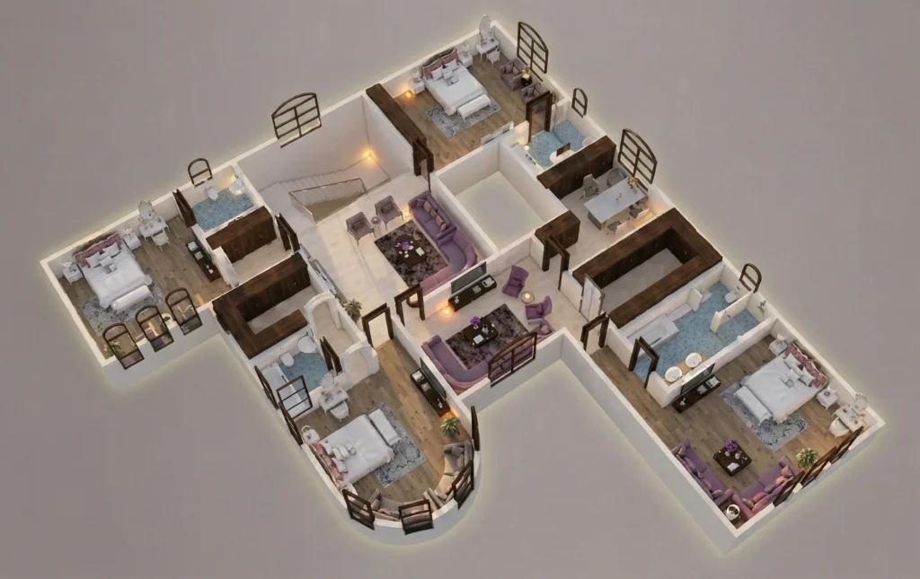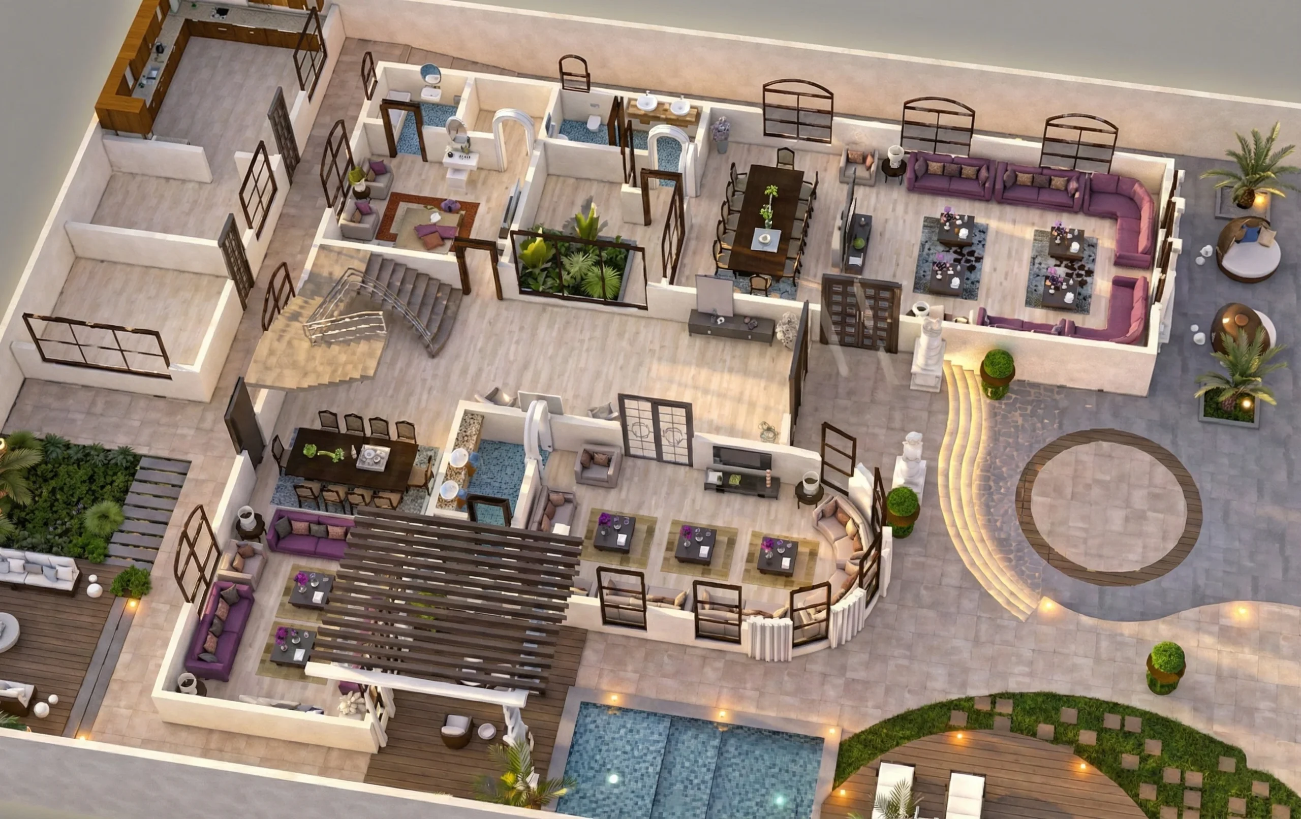 يجمع تصميم الفيلا بين الترفيه والوعي البيئي، مما يعزز صحة المجتمع ورفاهيته.